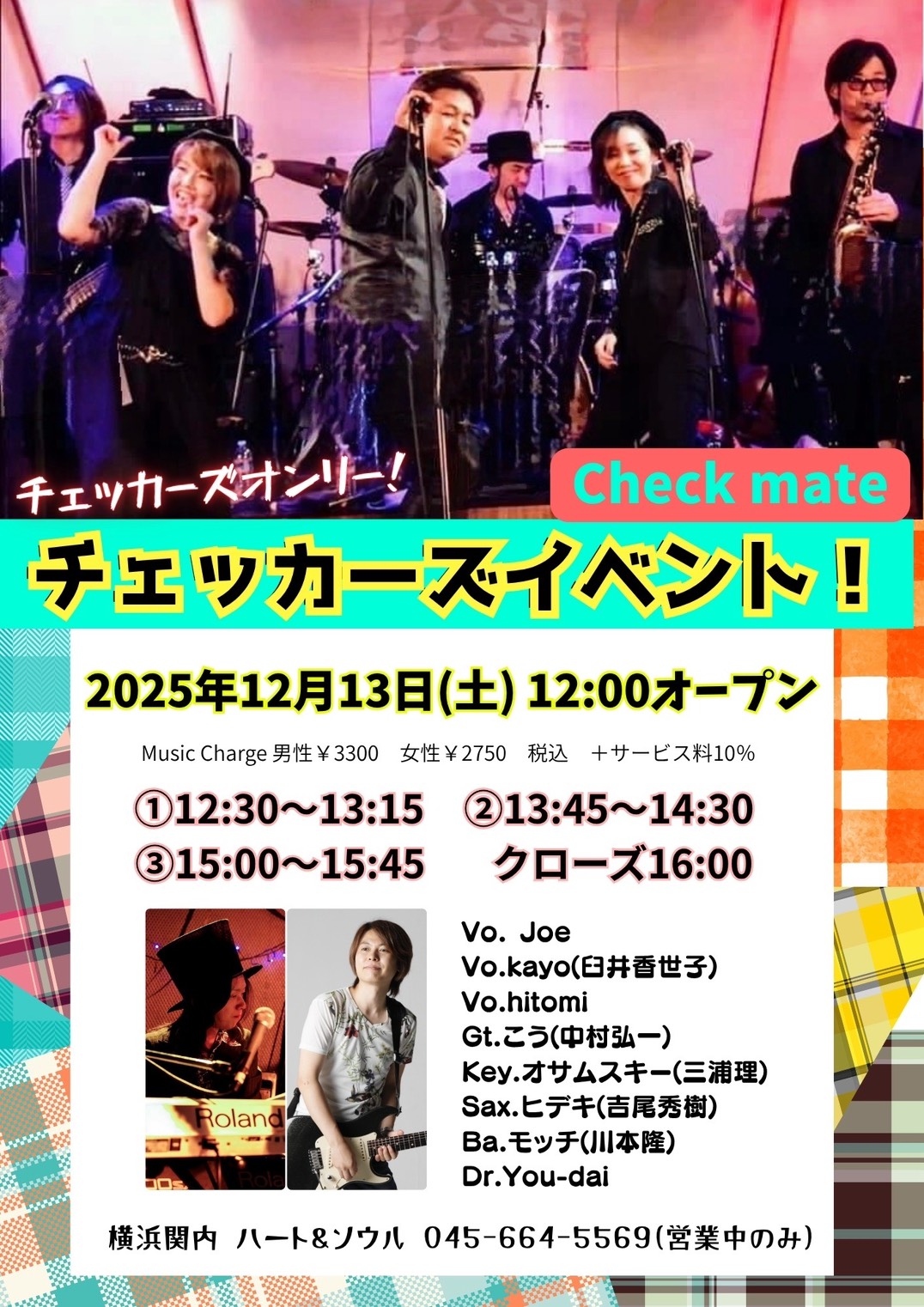 【昼】 Check mate OPEN/CLOSE OPENCLOSE 12:00 16:00 【夜】 momo. BAND Gt.Key.Ba.Dr.Cho. :原正行 :