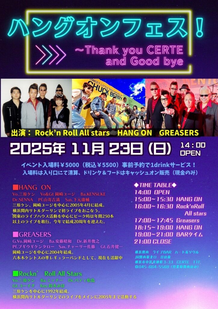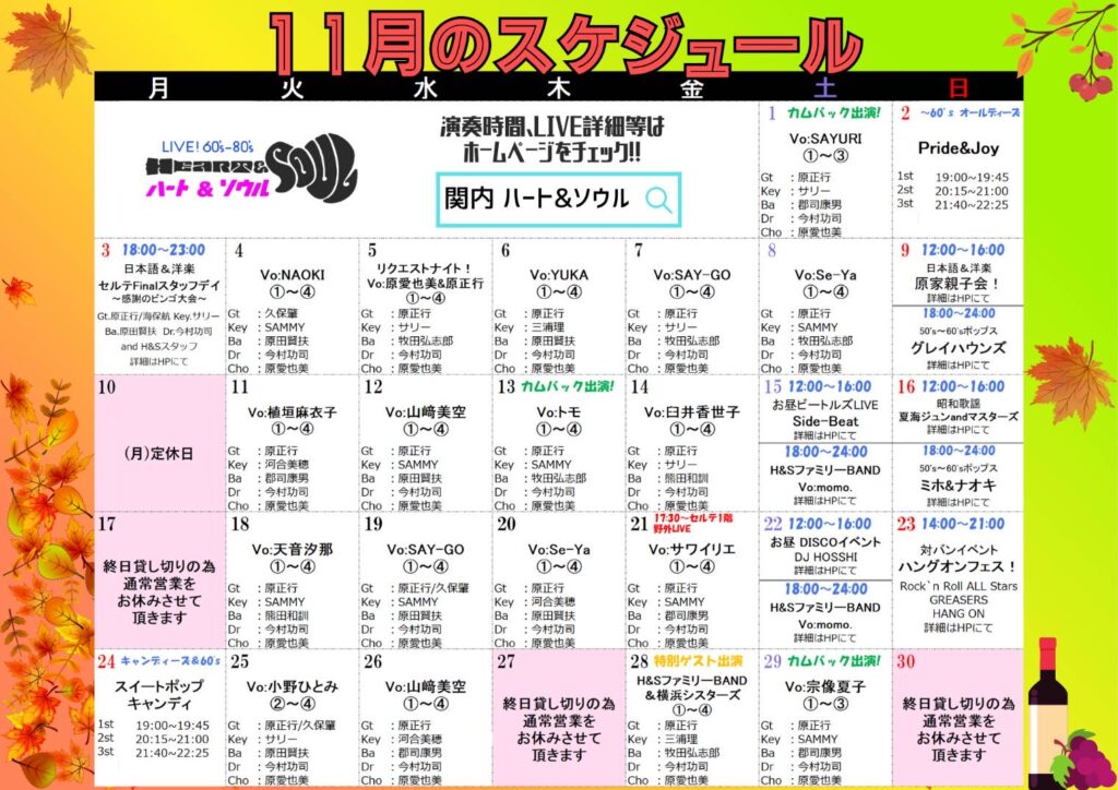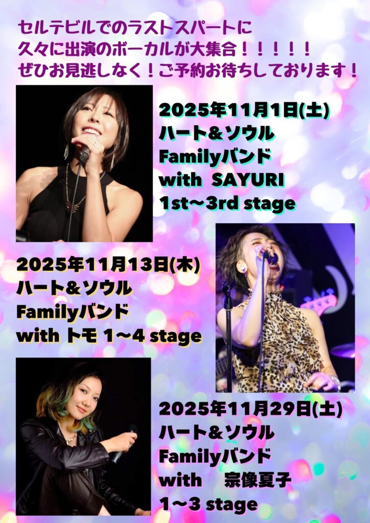 2025年10月4日(土) お知らせ 11月のスケジュール&ピックアップ 11月3日(月祝)セルテFINALスタッフデイ♪~感謝のビンゴ大会~ 12月21日(日)リトルダーリンナイトwithイエローキャブ