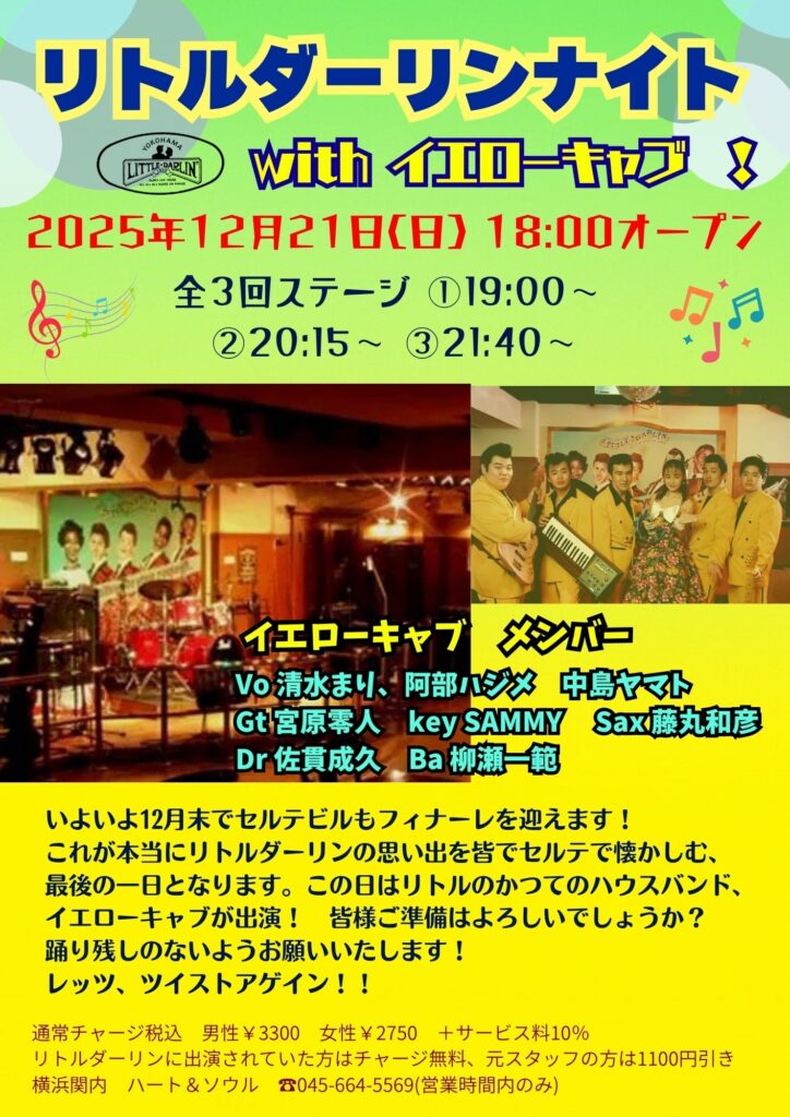 2025年10月18日(土) お知らせ 12月21日(日)リトルダーリンナイトwithイエローキャブ 11月のスケジュール&ピックアップ 12月28日(日)セルテ対バンフェスティバル!!※注意事項を必ずご確認してからのご予約お願いいたします。