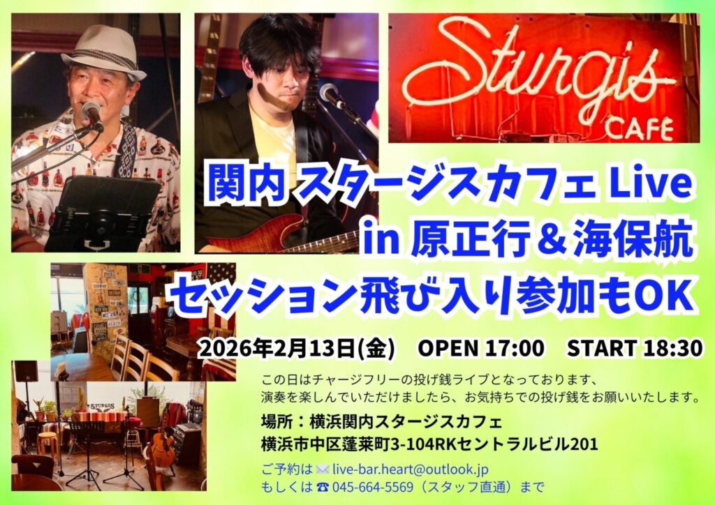 2月13日(金)原正行&海保航LIVE(関内スタージスカフェ)
