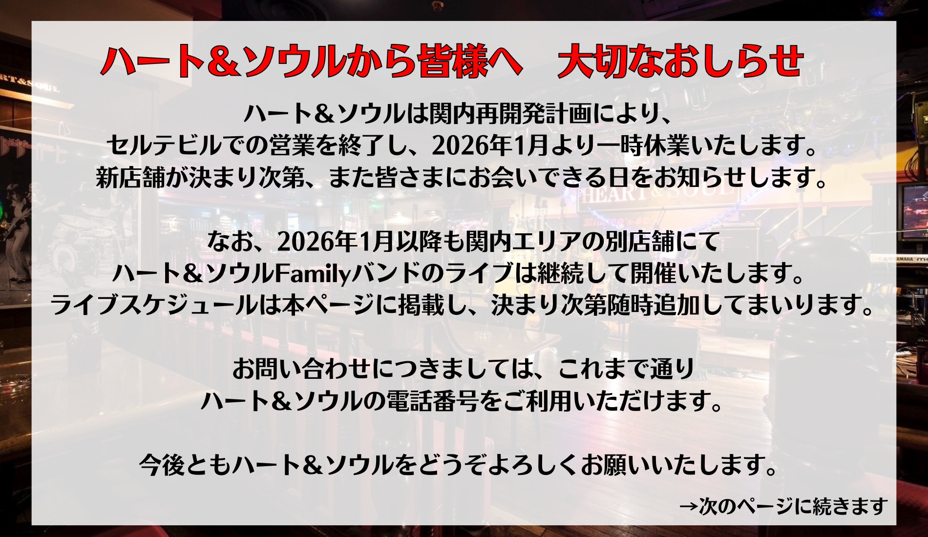 2026年新年あけましておめでとうございます。 セルテビルハート&ソウルにおきましては 15年以上の長きにわたりご愛顧をいただき 又コロナ禍では沢山の方々にクラウドファンディングなど多大なご支援を たまわり現在まで営業を […]
